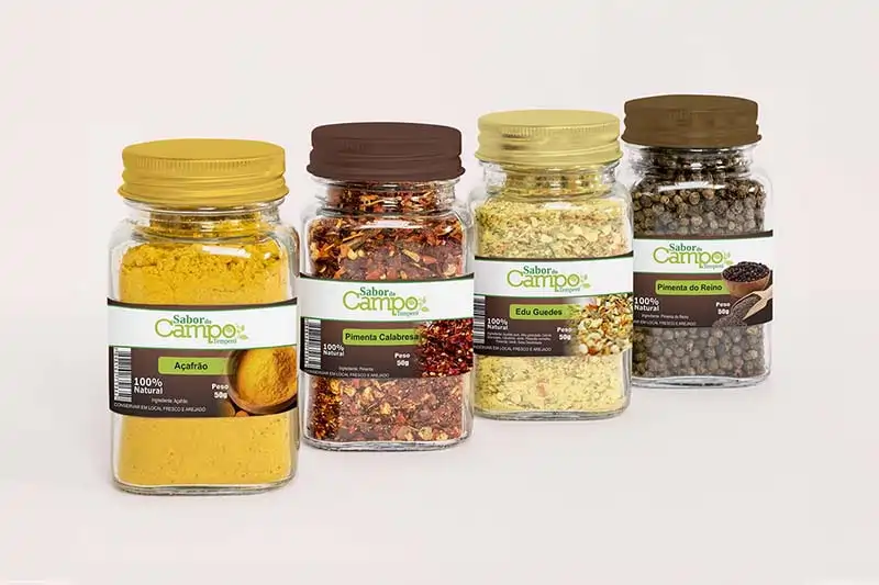 Seus rótulos de temperos personalizados funcionam como uma ferramenta de marketing que promove sua marca fora da loja.